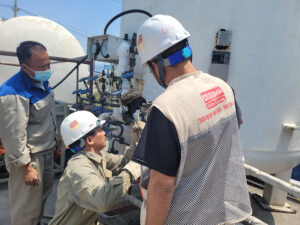 - An toàn: Bồn sẽ được xả toàn bộ khí đã hoá lỏng, các van, mặt bích đáy, đỉnh sẽ được tháo ra, sau 2h lượng O2 còn lại sẽ được khuếch tán ra môi trường. Do vậy không thể còn O2 cháy nổ.